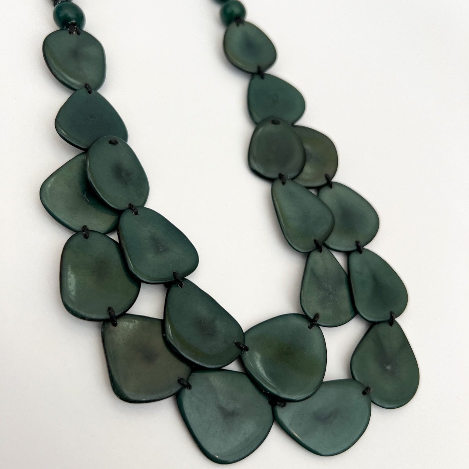 Discover the Adjustable Double Layer Tagua Necklace, handcrafted by artisans in the Andes with smooth, teardrop-shaped Tagua pieces that create a bold, layered design. Ethically sourced and eco-friendly, this stunning piece adds natural elegance to any look, with an adjustable length to suit your style.